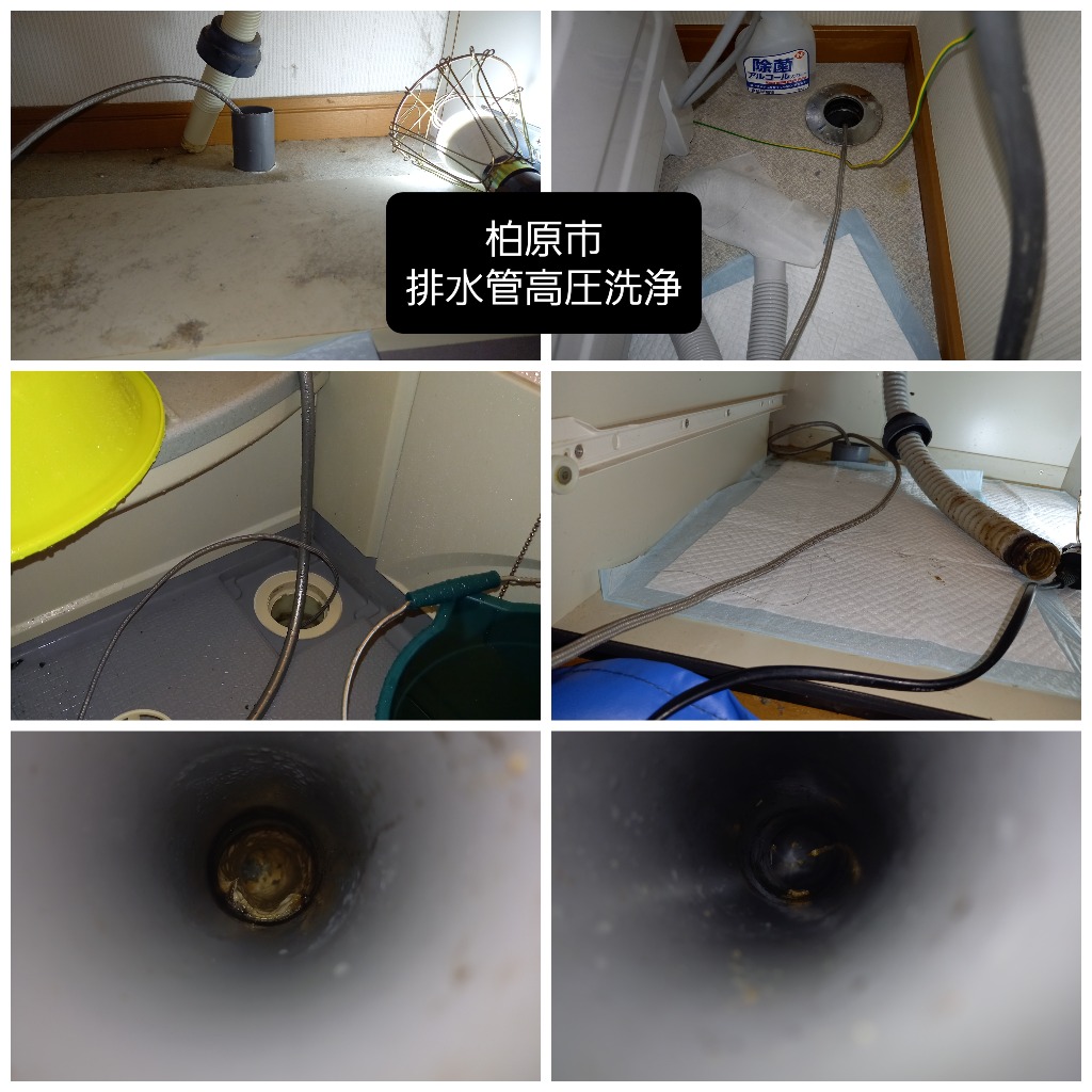 柏原市からは排水管の高圧洗浄のご依頼です。現場に行ってみると、外の汚水桝がかなり少ないタイプだったので家の中から各部洗浄致しました。