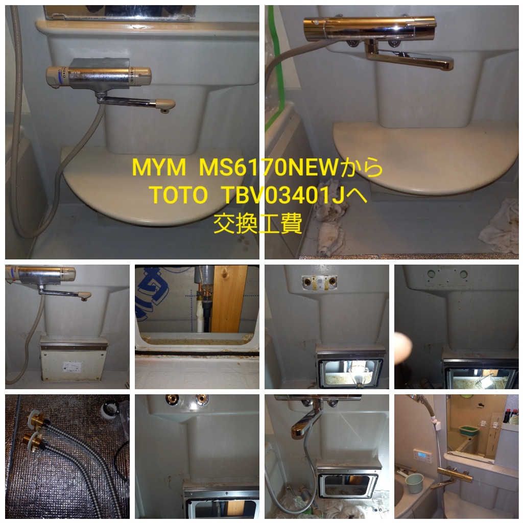 大阪市平野区から浴室水栓水漏れ、交換のご依頼が入りました。お客様も調べられていたのようで、MYMは倒産、KVKからも既存水栓の後継機は出ていないというのはご理解されていましたので、画像のような工事をお願いしたいとのご依頼になりました。浴室は、化粧板や埋め込み式などの関係で、中々簡単に水栓交換ができないことが結構あります。その際は加工や特殊工事になりますが、様々なタイプに対応致しますので、お気軽にご相談、お問合わせくださいませ。よろしくお願いいたします。
