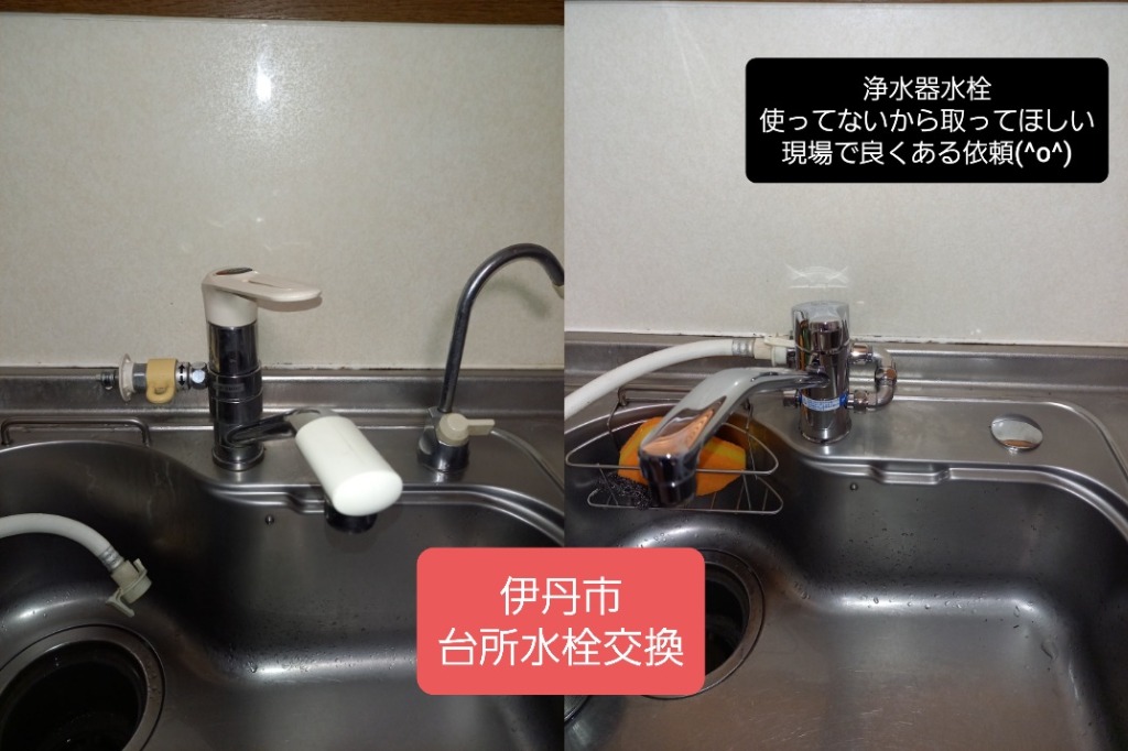 今回は現場でよくある事が続けてあったのでご紹介したいと思います。まずは、台所水栓交換の際、浄水器専用水栓がシンクにある場合、「もう使っていない」と言われる方が結構いらっしゃいます。じんわりやポタポタ水漏れしている場合もあります。ご案内すると「出来るなら取ってほしい」と言う方がほとんどです。水栓本体を取り外し、専用の蓋を設置して完了します。
