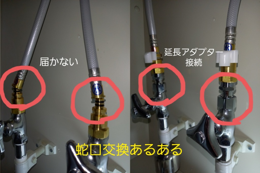 2月に入りましてもたくさんのご依頼、誠にありがとうございます!2月も混合水栓の水漏れの依頼が多いです。修繕方法はカートリッジ交換、あるいは水栓本体の交換になります。本体交換の際、よくあるのが止水栓まで給水ホースが届かない事です。結構あるパターンなので部品は車に積んでいるのですが、たまに使ったことを忘れて在庫がない!という事がございます。その場合は近くの資材屋さんに買いに行くのですが、在庫確認は大切ですね。