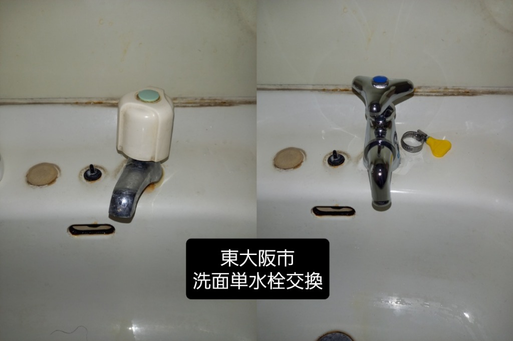 泉佐野市はもうほぼ見かけない蛇口が水漏れする依頼があり、全く形は異なりますがTLS05301Jを設置致しました。まだまだ古いタイプで頑張っている蛇口も多いですね!
