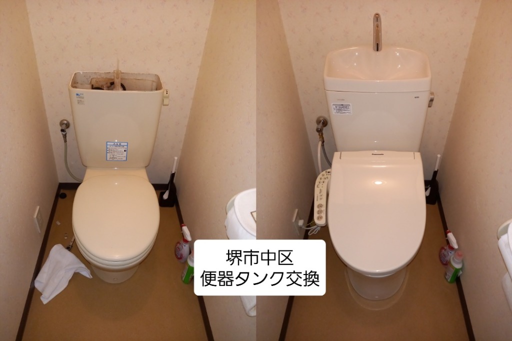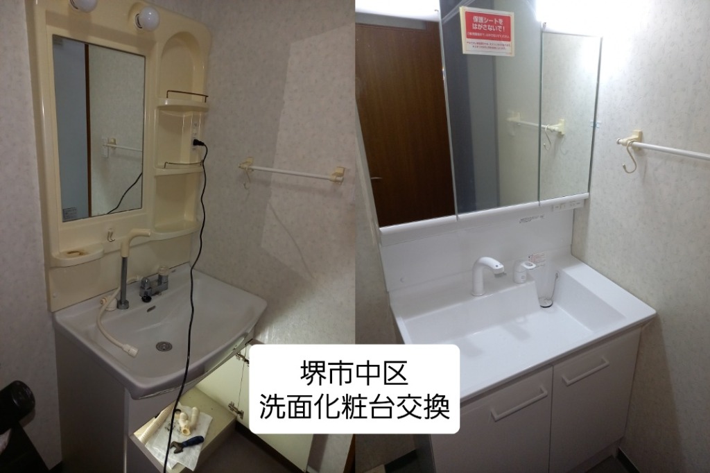堺市中区、2021年9月にお伺いしたリピートのお客様から洗面化粧台と2階のトイレの交換依頼が入りました。事前見積もり、現地調査をし施工日も決まりまして、最初は一人で頑張ろ~と考えていたのですが、ふと京都市の水道屋仲間と電話で話していた際に何気に「〇〇日空いてる?」と聞くと空いてるとの事。これはもう手伝ってもらおう!という事で一緒に施工致しました。おかげさまで午前中で施工完了致しました。ありがとうございました!