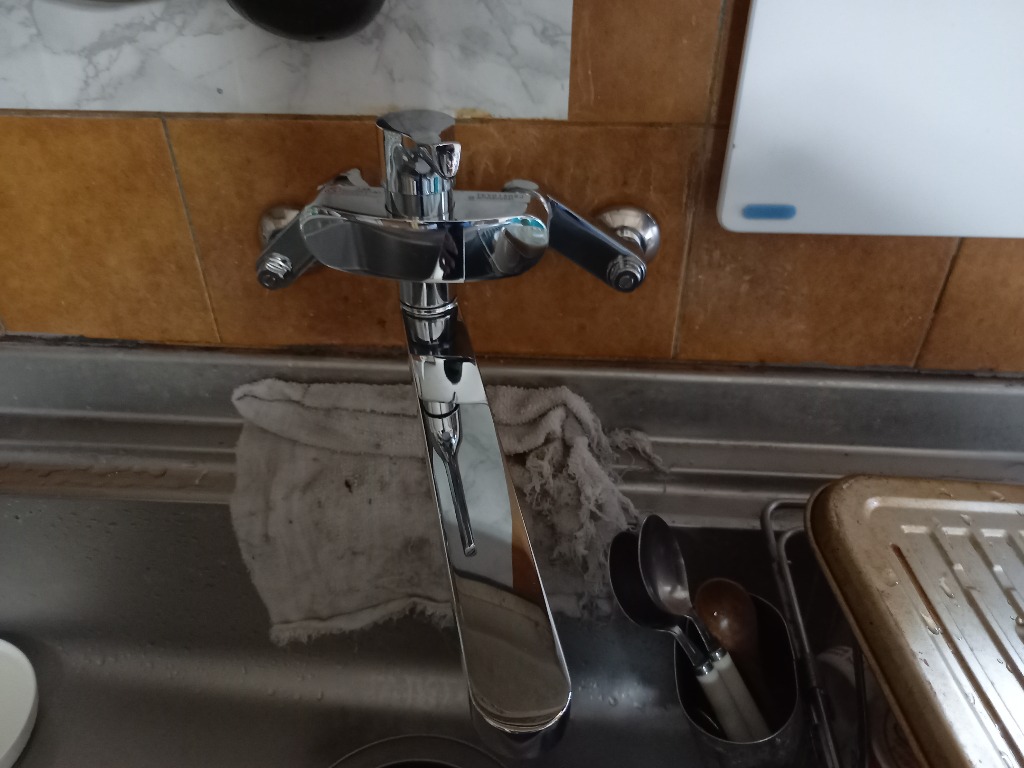 最近、ちょくちょく依頼であるのが飲食店の厨房にある手洗い水栓の交換です。どうやら保健所からのお達しのようで、今後はハンドル蛇口ではなくレバータイプにしないとダメらしいですね。先月、今月と大阪市内の飲食店から数店ご依頼を頂き交換させて頂きました。